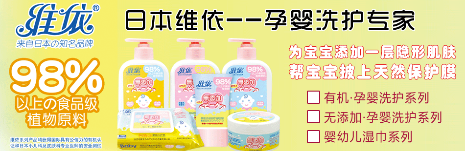 16年來,維依孕嬰系列產(chǎn)品一直在國(guó)際高端市場(chǎng)中的日本、歐洲、美國(guó)和香港等國(guó)家和地區(qū)的大流通渠道和專業(yè)渠道中熱銷。今天,綠色、天然、溫和、安全、優(yōu)質(zhì)的維依產(chǎn)品已經(jīng)進(jìn)入了中國(guó),讓中國(guó)寶寶萃享天然有機(jī)精華。