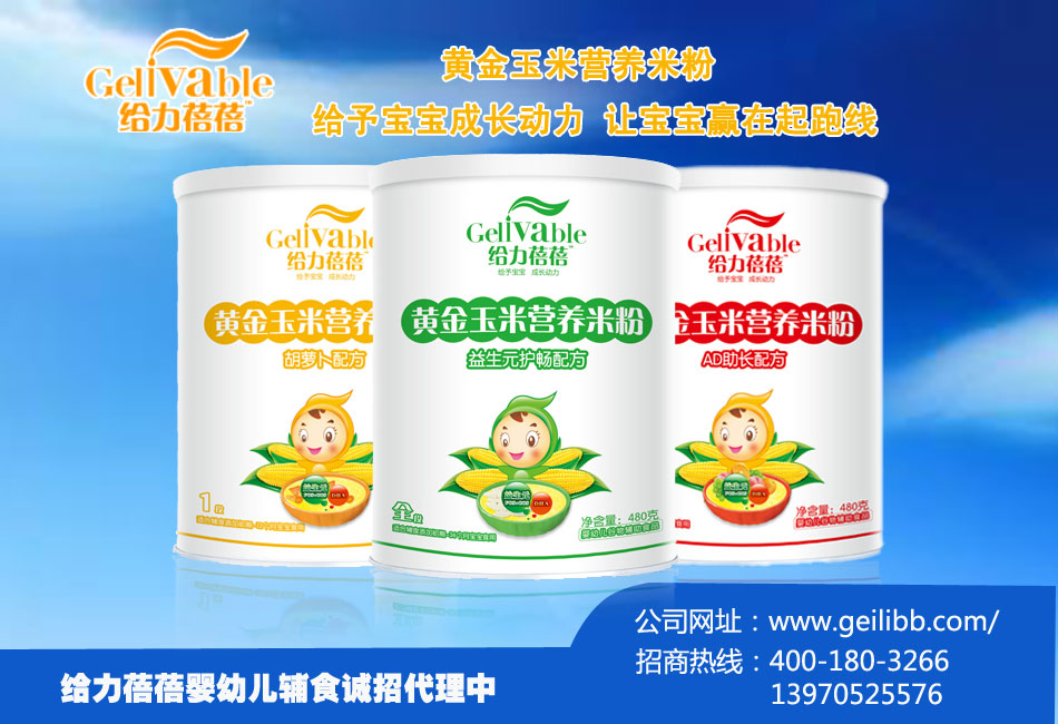 品牌名稱:給力蓓蓓 主營(yíng)產(chǎn)品:給力蓓蓓嬰幼兒輔食招商 品牌特色:天然純正 營(yíng)養(yǎng)豐富 口感良好
