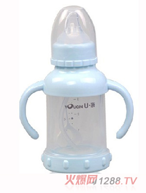 U親PP奶瓶選用食品級材質(zhì),絕不含雙酚A,安全,無毒,無味,耐高溫,易清洗,質(zhì)輕透明,不易破裂,外出攜帶方便。瓶口寬徑設(shè)計(jì),沖調(diào)奶粉更方便,不易外灑。底部有感溫變色功能,溫度過高時(shí),感溫區(qū)顏色由深變淺,提示水溫過高,需經(jīng)調(diào)試后方可給寶寶哺飲。產(chǎn)品賣點(diǎn)鮮明,造型新穎,市場接受度高。