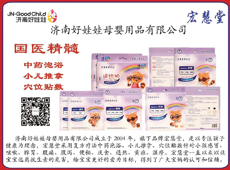 濟(jì)南好娃娃母嬰用品有限公司成立于2004年,旗下品牌宏慧堂,是以專注孩子健康理念,宏慧堂采用復(fù)方療法中藥泡浴、小兒推拿。穴位貼敷針對(duì)小兒感冒、咳嗽、脾胃、腹痛、腹瀉、便秘、厭食、退熱、黃疸、濕疹。宏慧堂一直以來以讓寶寶遠(yuǎn)離抗生素的危害,為寶寶更好的愛為目標(biāo),得到了廣大寶媽的認(rèn)可和信賴!