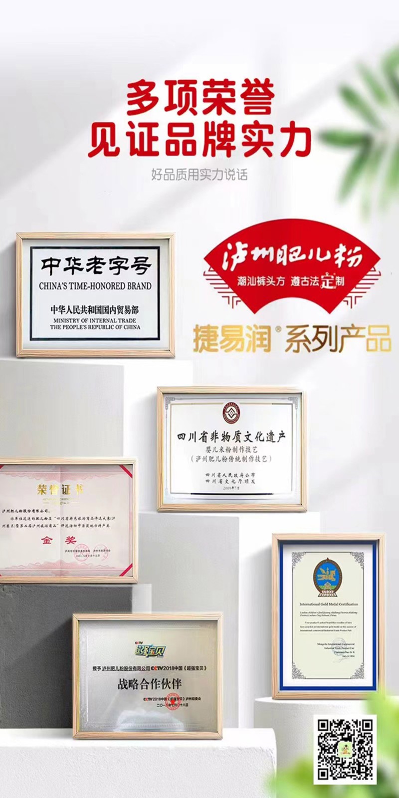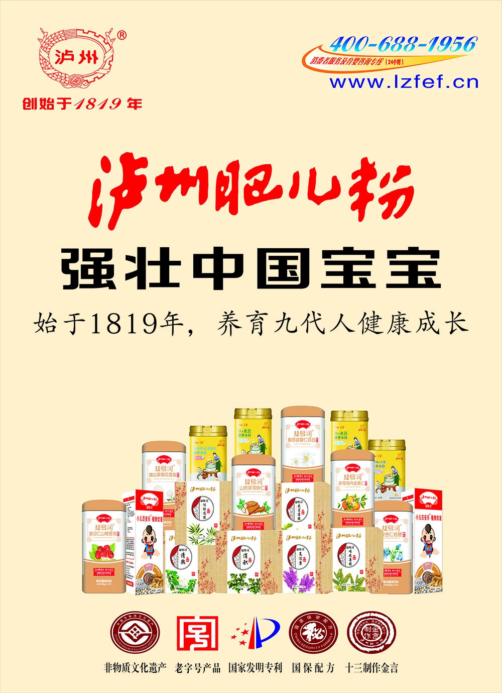 “瀘州肥兒粉”系有兩百年歷史傳承和六十年創(chuàng)牌與建廠史的嬰幼兒輔食及適合大眾養(yǎng)生和體弱多病中老年人食用的產(chǎn)品,我們獨特的“藥食同源配方”一度成為國家保密配方。“瀘州肥兒粉”的前生誕生于1819年瀘州人蔣宗明在小市開辦的“瀘州米羹羹”作坊。直到新中國成立后,“瀘州米羹羹”作坊的傳承人何汝彬于1956年6月將“瀘州米羹羹”作坊與當(dāng)時的瀘州市副食品加工廠合并成立了 “瀘州市地方國營北城肥兒粉廠”,陳雅南任廠長至退休!盀o州肥兒粉”是以“肥兒丸”古方為基礎(chǔ),主料為糙米,配料選用能健脾益胃、消食助運的大豆、綠豆、苡仁、芡實、建神曲等7-21種藥食同源級食材經(jīng)過“炒、燒、烤、燜、烘、焙,磨、蒸、煮、炙、碾、沙、土”等十三道手工工藝制作,發(fā)明創(chuàng)造的我國首例嬰幼兒藥理配方米粉。1956年夏,產(chǎn)品基本定型,并以“瀘州”二字設(shè)計制作了品牌標(biāo)記,第一代“瀘州肥兒粉”正式誕生。1960年4月3日成功注冊“肥兒粉”商標(biāo);又于1979年10月31日獲準以“瀘州”為商標(biāo)使用,從此“瀘州肥兒粉”擁有了雙商標(biāo)。1988年,“瀘州肥  兒粉”被瀘州市醫(yī)藥管理局正式確定為保健食品;1993年“瀘州肥兒粉”獲得蒙古國烏蘭巴托國際食品博覽會金獎。