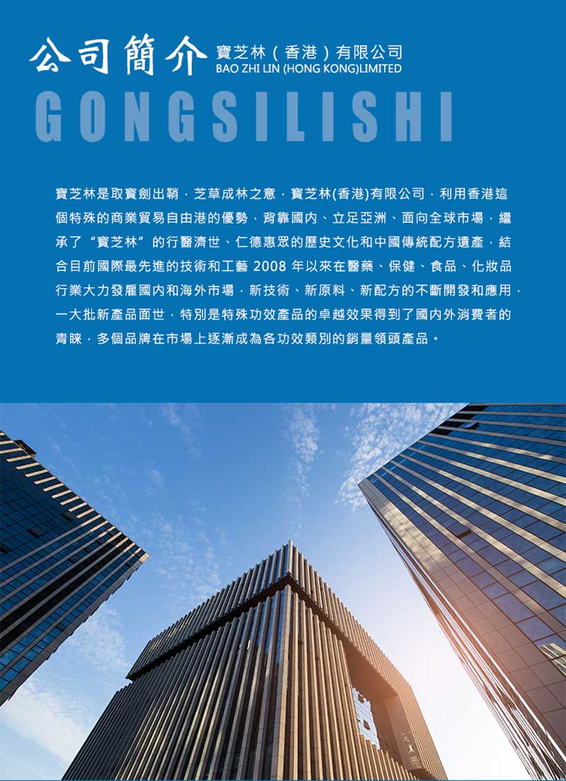 寶芝林是取寶劍出鞘.芝草成林之意。寶芝林(香港)有限公司,利用香港特殊貿(mào)易自由港的優(yōu)勢(shì),背靠國(guó)內(nèi)、立足亞洲、面向全球市場(chǎng),繼成了“寶芝林”的行醫(yī)濟(jì)世、仁德惠眾的歷史文化和中國(guó)的傳統(tǒng)配方遺產(chǎn),結(jié)合目前國(guó)際最先進(jìn)的技術(shù)和工藝,2008年以來在醫(yī)藥、保健、食品、化妝品行業(yè)大力發(fā)展國(guó)內(nèi)和海外市場(chǎng),新技術(shù)、新原料、新配方的開發(fā)和應(yīng)用,一大批新產(chǎn)品面世,特別是特殊功效產(chǎn)品卓越效果,得到了國(guó)內(nèi)外消費(fèi)者的青睞,多個(gè)品牌在市場(chǎng)上逐漸成為各功效類別的銷量領(lǐng)頭產(chǎn)品。