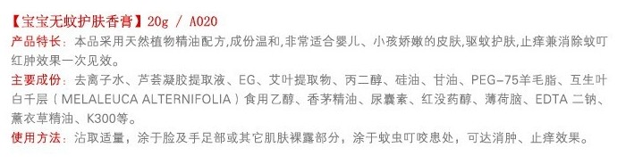 潤(rùn)本草本防蚊沐浴露秉承中華傳統(tǒng)中醫(yī)藥理論,結(jié)合現(xiàn)代生產(chǎn)工藝,專門針對(duì)嬰兒肌膚特點(diǎn)研制,含多種天然植物精華于一體,精制而成。薄荷其清涼的感覺,能收縮微血管、舒緩發(fā)癢、也可柔軟肌膚;香茅精油有效特性是驅(qū)蟲,依靠其獨(dú)特的香味驅(qū)蚊,避免蚊蟲的叮咬,是驅(qū)蚊護(hù)膚的必備良品。