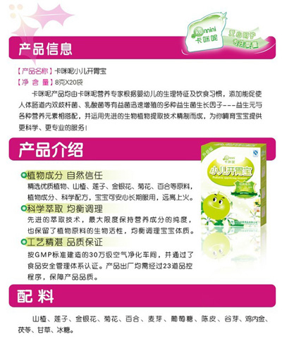 蛋白質(zhì)是人體重要營養(yǎng)素,也是多的營養(yǎng)素之一,是一切生命的物質(zhì)基礎(chǔ),可以保證機(jī)體的生長、發(fā)育、繁殖、遺傳及修補(bǔ)損傷的組織。上海卡咪呢母嬰用品有限公司是專業(yè)的母嬰營養(yǎng)品企業(yè),針對(duì)中國孕嬰童體質(zhì)推出了卡咪呢蛋白質(zhì)粉系列產(chǎn)品,現(xiàn)面向全國招商。