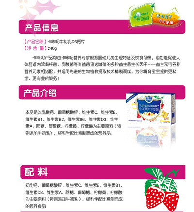 蛋白質(zhì)是人體重要營養(yǎng)素,也是多的營養(yǎng)素之一,是一切生命的物質(zhì)基礎(chǔ),可以保證機(jī)體的生長、發(fā)育、繁殖、遺傳及修補(bǔ)損傷的組織。上?ㄟ淠啬笅胗闷酚邢薰臼菍I(yè)的母嬰營養(yǎng)品企業(yè),針對(duì)中國孕嬰童體質(zhì)推出了卡咪呢蛋白質(zhì)粉系列產(chǎn)品,現(xiàn)面向全國招商。