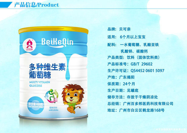 您所在位置:首頁>廣州百多邦醫(yī)藥科技有限公司>貝可親多種維生素葡萄糖500g
