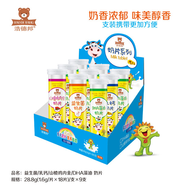 浩德邦奶片系列甄選優(yōu)質(zhì)原料,采用先進工藝制作,不添加色素、香精、防腐劑等,有DHA藻油、乳鈣、山楂雞內(nèi)金、益生菌四大配方,有瓶裝和支裝兩種不同的規(guī)格,滿足不同需求,口口香脆好滋味。