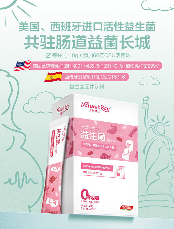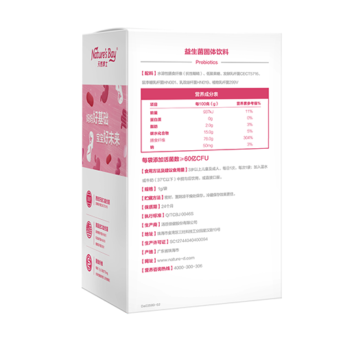 主要原料:水溶性膳食纖維、(抗性糊精)、低聚果糖、發(fā)酵乳桿菌CECT5716、鼠李糖乳桿菌HN001、乳雙歧桿菌HN019、植物乳桿菌299V