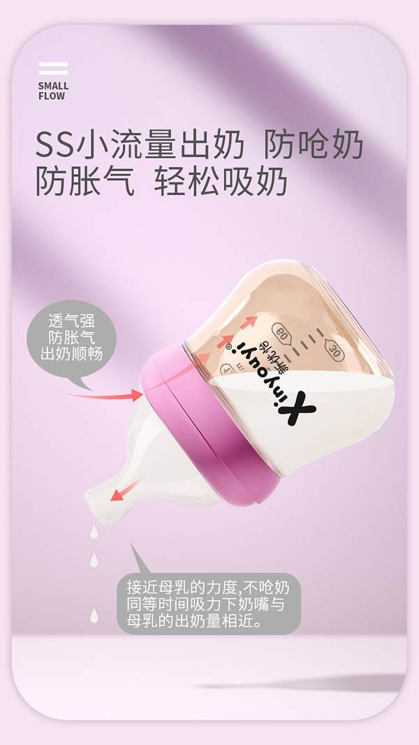 奶瓶,作為嬰幼兒成長飲食之路上的必需品,家長在選擇上也是十分謹(jǐn)慎小心的。而母嬰行業(yè)的代理商群體,在代理上也是一樣。希望能夠代理一款備受市場青睞以及認(rèn)可的品牌產(chǎn)品。這樣才能夠更好的打開市場,收獲更多財富。愛益寶180ML智能防脹氣偏心PPSU奶瓶-粉色,大家了解嗎?諸多優(yōu)勢,助你財富滿滿。