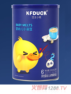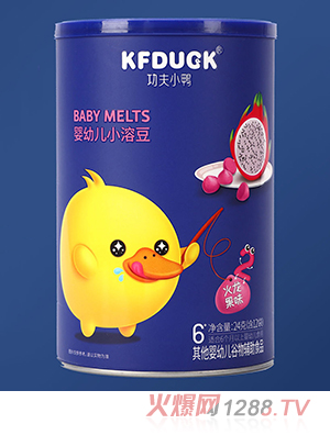 功夫小鴨嬰幼兒小溶豆系列,有獼猴桃味、香蕉胡蘿卜味、火龍果味、原味等,共四種口味,甄選食材,精湛制作,營(yíng)養(yǎng)高度保留,入口即溶,好吃不膩。