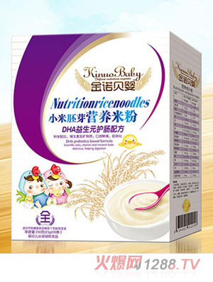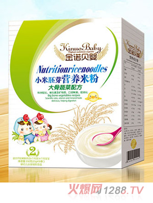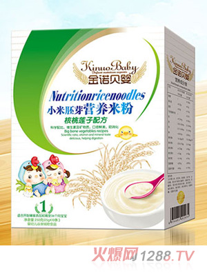 金諾貝嬰小米胚芽營養(yǎng)米粉大骨蔬菜核桃蓮子強(qiáng)化鐵鋅鈣潤腸DHA益生元護(hù)暢水果多維配方盒裝
