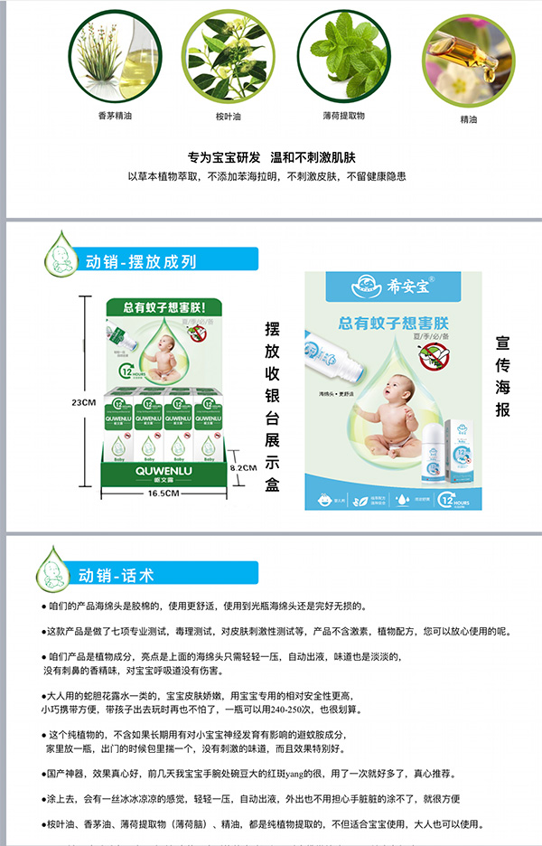 希安寶,以“成長只有一次,百分百守護(hù)寶寶健康”為理念。有希安寶讓寶寶多一份守護(hù),讓媽媽少一份擔(dān)心。以制藥的標(biāo)準(zhǔn)生產(chǎn),致力為中國yingye提供安全,有效,值得信賴的夏季剛需產(chǎn)品,賦予寶寶更多優(yōu)效保護(hù)。