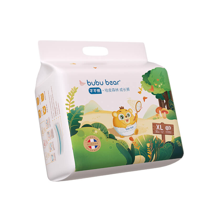 面層直接與寶寶嬌嫩皮膚接觸,熱風無紡布具有蓬松、柔軟且較好的親水性等優(yōu)勢,保證面層的液體吸收率高且回滲少,從而達到液體接觸皮膚表面的時間短、干爽、舒適。