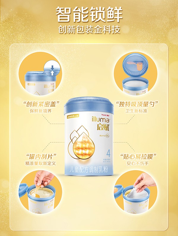 惠氏藍鉆啟賦4段兒童奶粉(升級版)屬于愛爾蘭進口產品,適用于兒童,添加了膽堿、牛磺酸、DHA、ARA/AA等常規(guī)強化配方,以及OPO、葉黃素、β-胡蘿卜素特色強化配方,其中OPO含量為3g/100g,其低聚半乳糖為乳清濾出液來源,含量為4.6g/100g。