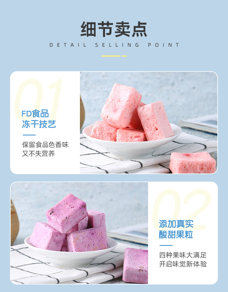 • OEM貼牌凍干果粒酸奶塊3克即食型草莓藍(lán)莓味益生菌塊口味定制源頭
