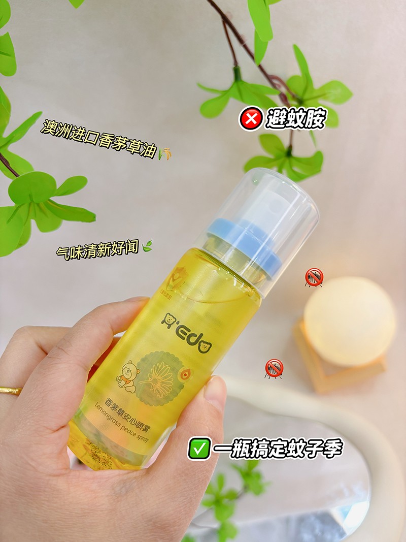 小奕噠香茅草安心噴霧,采用澳洲進口香茅草油,蘊含天然植物驅(qū)蚊成分,不含避蚊胺,氣味清新好聞。植物呵護,清涼舒適,防護安心,母嬰人群和敏感肌膚都適用。噴霧均勻細膩,清爽不粘膚,氣味清新不刺鼻,小巧便捷,直接噴涂于肌膚上,溫和不刺激,無叮無憂,防護舒爽,悠享夏日好時光!