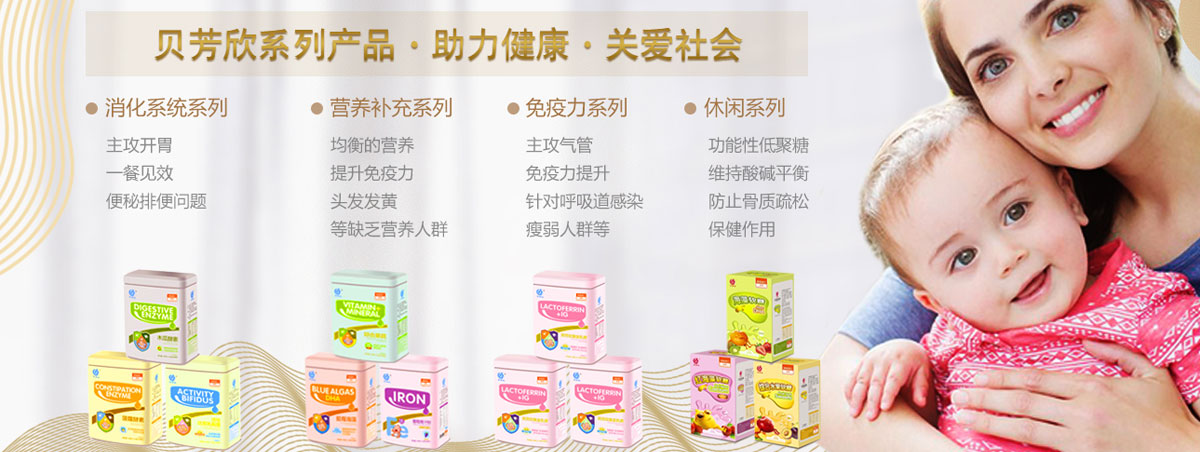 “貝芳欣”系列產(chǎn)品覆蓋消化系統(tǒng)、免疫系統(tǒng)、營(yíng)養(yǎng)系列等多種母嬰健康營(yíng)養(yǎng)食品和日常護(hù)理用品,采用臺(tái)灣先進(jìn)技術(shù)、科學(xué)配方和進(jìn)口原料,其優(yōu)良品質(zhì)深受母嬰消費(fèi)者的推崇。