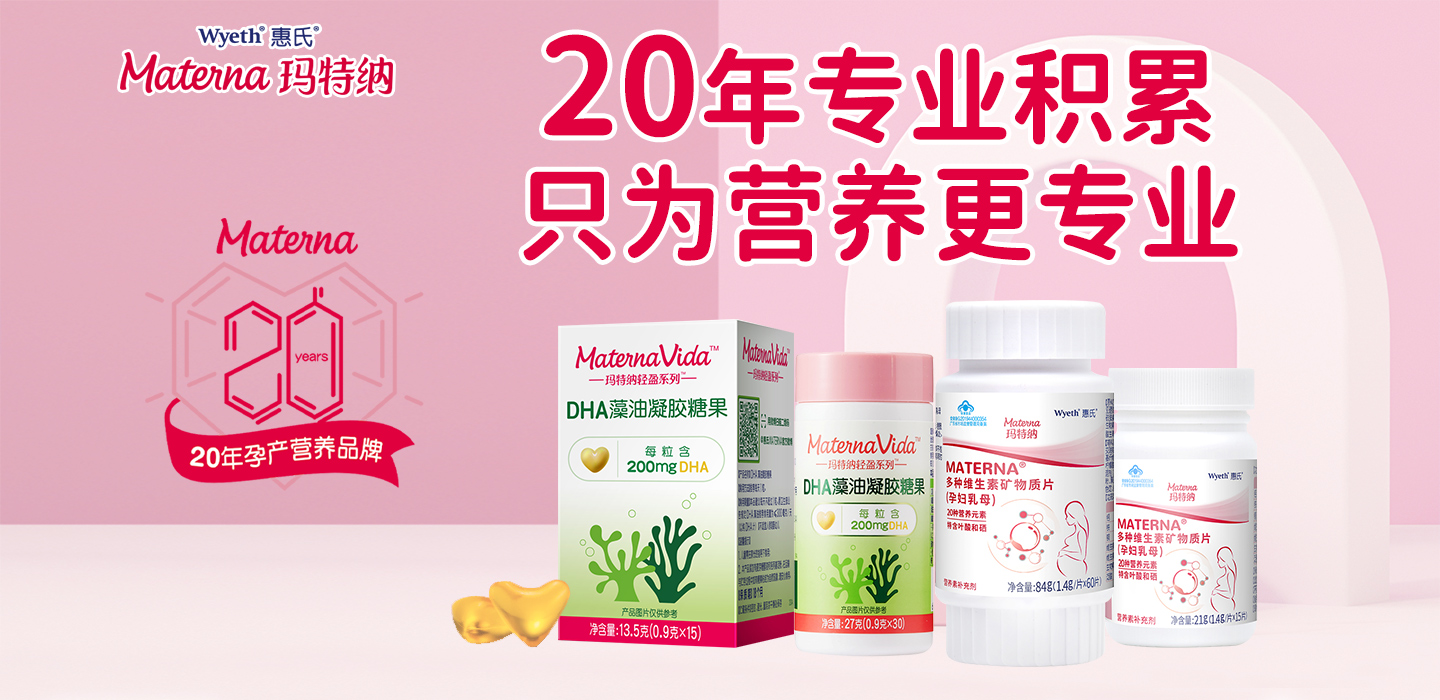 惠氏瑪特納是惠氏專門(mén)面向孕產(chǎn)的品牌。惠氏瑪特納在1986年品牌注冊(cè)進(jìn)入中國(guó),并于1995年獲得OTC批文,旗下第一款孕婦多維產(chǎn)品正式進(jìn)入中國(guó)市場(chǎng)。20多年來(lái)惠氏瑪特納致力于專項(xiàng)研究備孕、懷孕和哺乳期各個(gè)階段的不同營(yíng)養(yǎng)所需與常見(jiàn)的健康挑戰(zhàn),為中國(guó)媽媽和寶寶科學(xué)規(guī)劃不同的營(yíng)養(yǎng)產(chǎn)品,提供專業(yè)營(yíng)養(yǎng)解決方案。