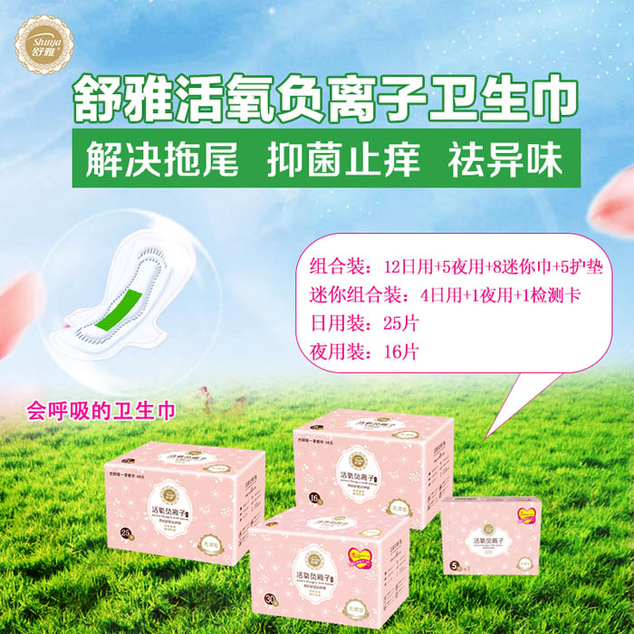 品牌名稱:舒雅 主營產(chǎn)品:舒雅負(fù)離子衛(wèi)生巾招商 品牌特色:安全 舒適 健康