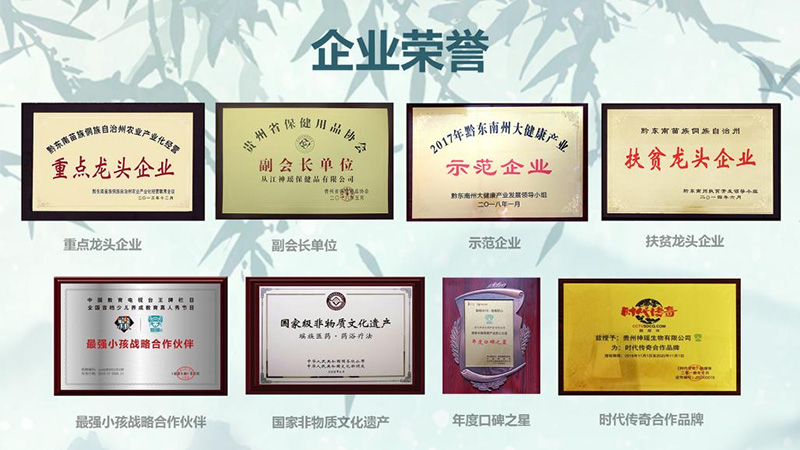 貴州神瑤生物科技有限公司自成立以來,長期專注于國家非物質(zhì)文化遺產(chǎn)瑤族藥浴產(chǎn)品的研發(fā)生產(chǎn)和銷售,生產(chǎn)基地位于瑤浴文化之鄉(xiāng)------貴州省從江縣。公司自成立起先后獲得了黔東南州農(nóng)業(yè)產(chǎn)業(yè)化重點龍頭企業(yè)、貴州省守合同重信用單位,央視網(wǎng)商城優(yōu)選品牌,2019年中國母嬰產(chǎn)業(yè)“口碑之星”,中國教育電視臺《最強小孩》欄目戰(zhàn)略合作伙伴等榮譽。同時,公司擁有商標,版權(quán),專利等知識產(chǎn)權(quán)保護共計三十余項。