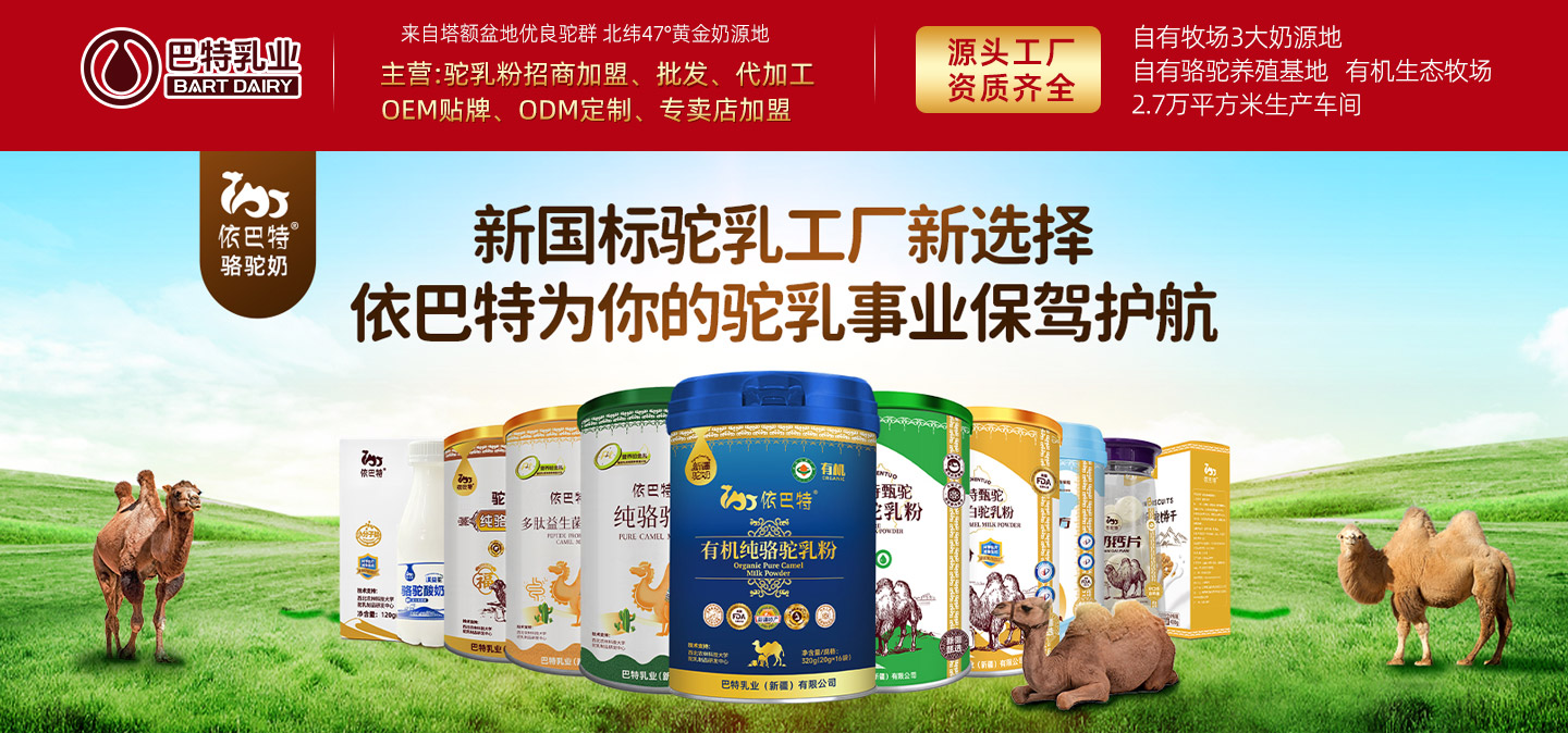 主營產(chǎn)品:依巴特駝乳粉,有機(jī)駝乳粉,純駝奶粉,駝奶鈣片,駱駝酸奶 產(chǎn)品(15個(gè))新聞(1條)