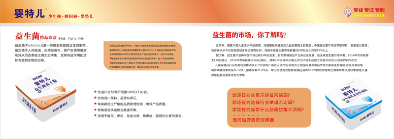 “嬰特兒”就是湖北英賽特醫(yī)藥科技有限公司旗下主打的嬰幼兒營養(yǎng)品品牌,它涵蓋了寶寶成長所需的多種營養(yǎng)品及輔食,如寶寶們輔食階段必備的嬰幼兒米粉系列,可以有效預(yù)防并緩解寶寶上火的清清寶系列,更有呵護(hù)寶寶腸道健康的益生菌系列以及助力寶寶健康成長的蛋白粉以及凝膠糖果系列。多系列多產(chǎn)品的研發(fā)和涉足,只是為了讓每一個(gè)寶寶都能擁有健康好身體,讓為人父母者更放心更安心,這就是嬰特兒品牌的初衷和美好心愿。