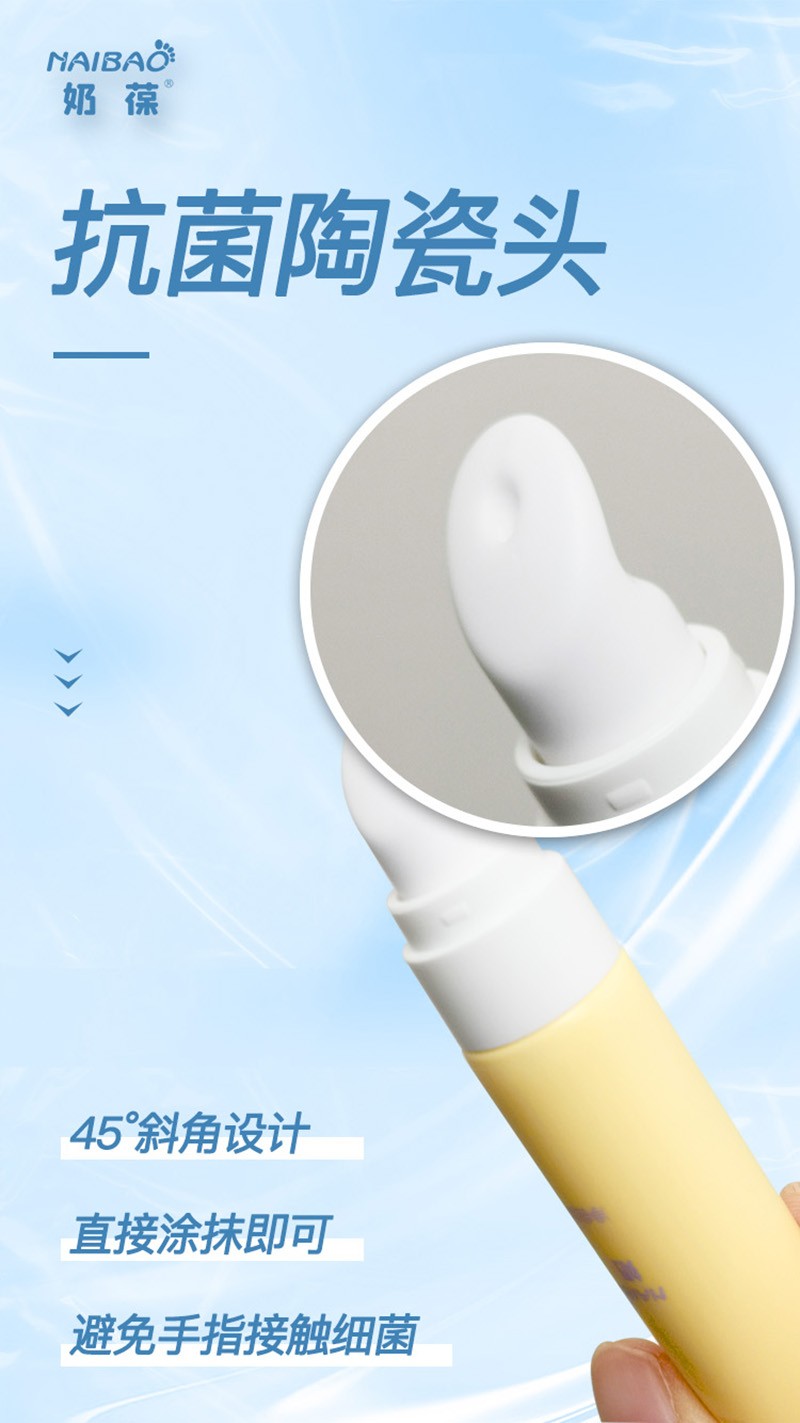 除了成分安心,產(chǎn)品設(shè)計(jì)更是戳中寶媽們的痛點(diǎn)。采用抗菌陶瓷頭,搭配科學(xué)的45°斜角設(shè)計(jì),剛好貼合寶寶唇周、下巴的弧度,直接順著肌膚紋理涂抹就行,完全不用手指接觸,從源頭避免細(xì)菌沾染,給寶寶用著特別放心。無(wú)論是日常唇周干燥,還是出牙期流口水導(dǎo)致的泛紅不適,它都能派上大用場(chǎng),滋潤(rùn)感滿滿,讓寶寶的小臉蛋保持柔嫩狀態(tài)。