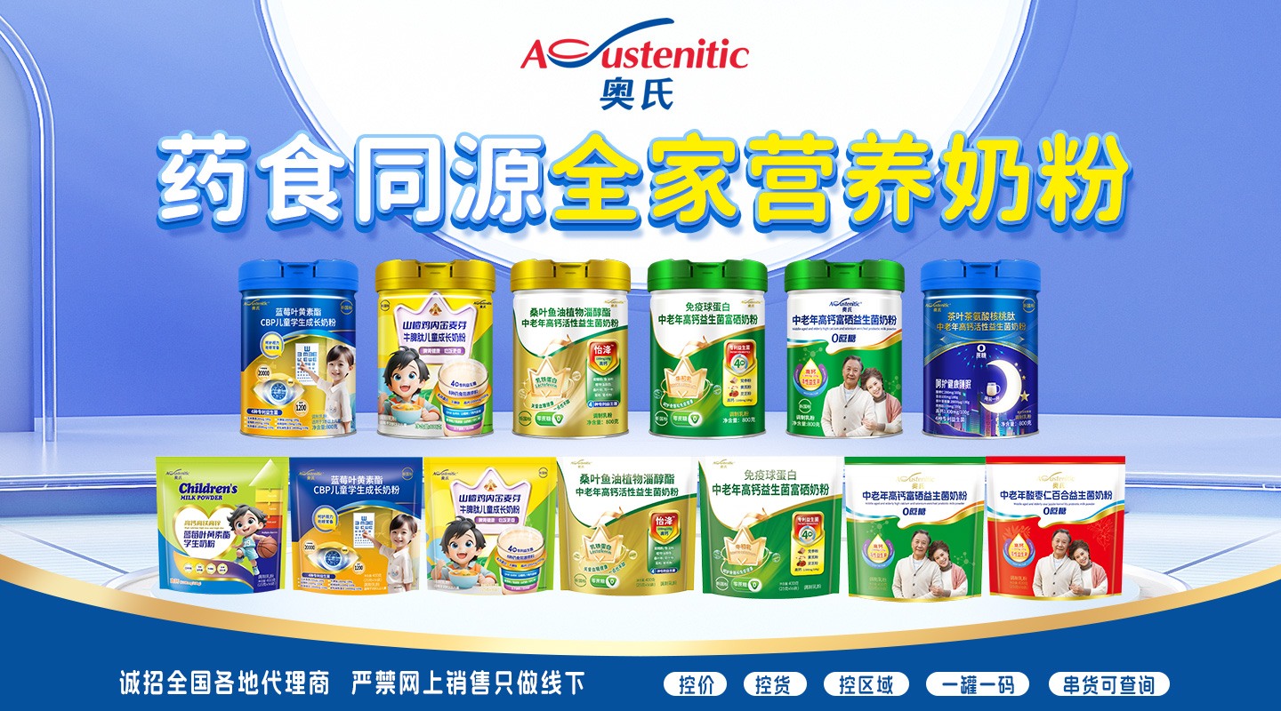 奧氏(Austenitic ) 是專注于藥食同源營養(yǎng)健康的奶粉品牌,品牌以“科學(xué)營養(yǎng)·健康齡距離”為核心理念,結(jié)合現(xiàn)代營養(yǎng)科技,打造符合健康需求的高端奶粉產(chǎn)品。