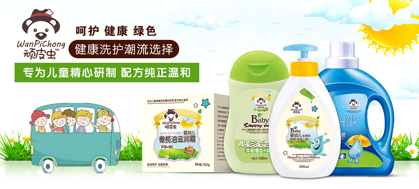 “頑皮蟲(chóng)”嬰幼兒洗護(hù)用品,旗下主營(yíng)嬰幼兒洗發(fā)露、沐浴露、洗衣皂、洗手液、驅(qū)蚊產(chǎn)品以及潤(rùn)膚露等產(chǎn)品,呵護(hù)寶寶皮膚健康成長(zhǎng),公司產(chǎn)品尋求更放心,只為讓媽媽安心守護(hù)!給寶寶提供無(wú)盡的關(guān)愛(ài)!