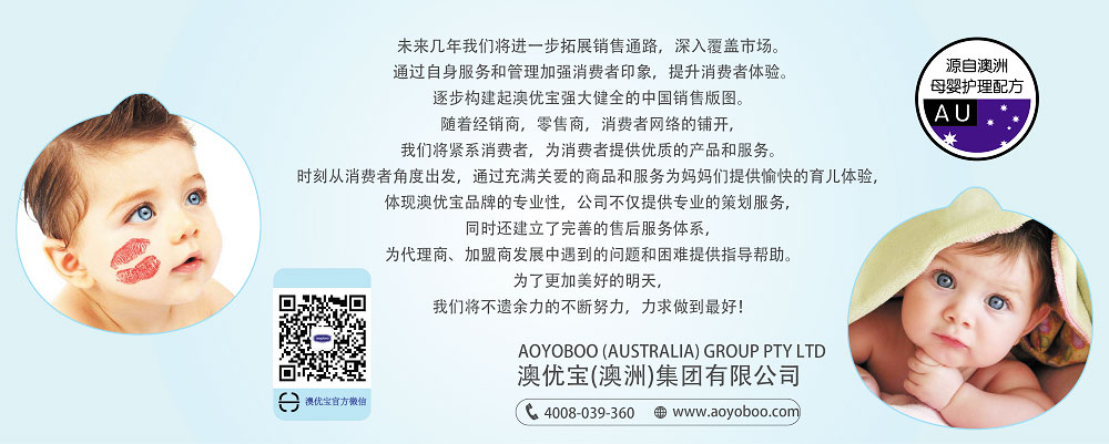 AOYOBOO (澳優(yōu)寶) 是來自澳洲的著名母嬰用品品牌,由澳洲自然科學(xué)研究院與皮膚科、產(chǎn)科、小兒皮膚科專家共同研究開發(fā)、專門針對孕產(chǎn)婦、新生兒及嬰幼兒時期的敏感嬌嫩肌膚而設(shè)計的低刺激高功能護膚用品。產(chǎn)品涵蓋了母乳喂養(yǎng)、奶瓶奶嘴、寶寶肌膚護理、衣物清洗等撫育寶寶的方方面面。