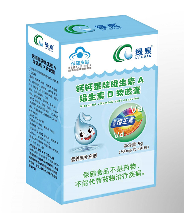 綠泉鈣鈣星牌維生素A維生素D軟膠囊產(chǎn)品展示