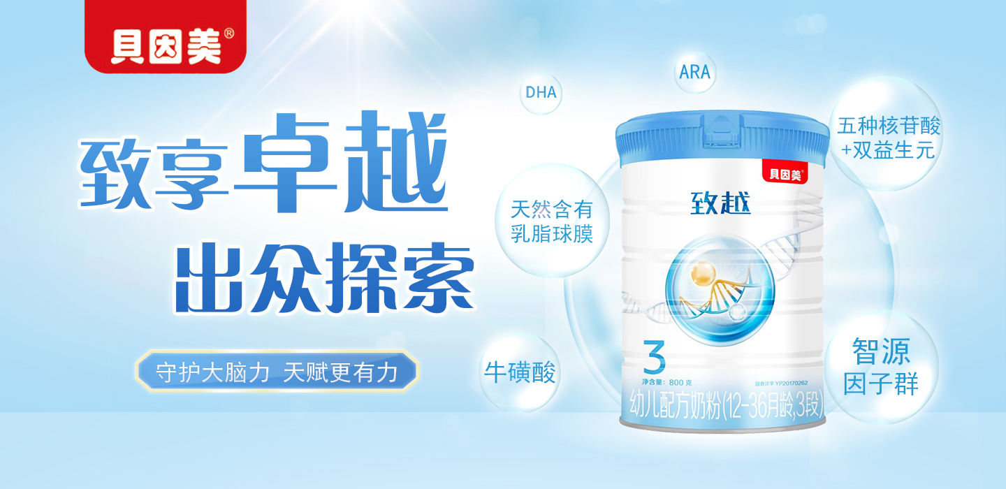 致越是貝因美旗下一款嬰幼兒配方奶粉,貝因美成立于1992年,主公司以“親子顧問,育兒專家”為品牌定位,主要從事嬰幼兒食品的研發(fā)、生產(chǎn)和銷售等業(yè)務,旗下奶粉系列擁有菁愛、童享、愛加、綠愛、超冠寶和天才寶貝等產(chǎn)品,其中致越主要在母嬰門店等渠道銷售。