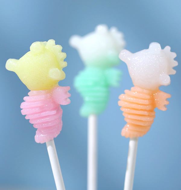 米唐たき海洋小分隊棒棒糖-海馬馬卡龍草莓味橙子味哈密瓜味多種口味兒童零食8g/支產(chǎn)品展示