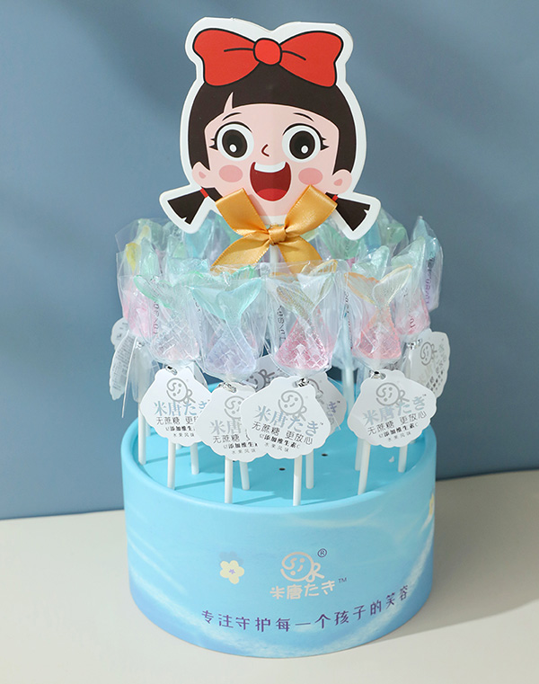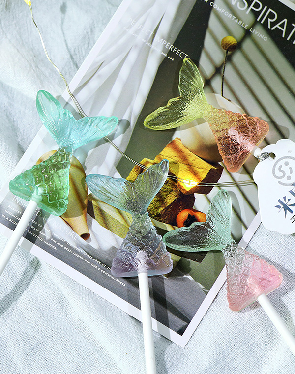 米唐たき海洋小分隊(duì)棒棒糖-魚尾漸變白桃味產(chǎn)品展示