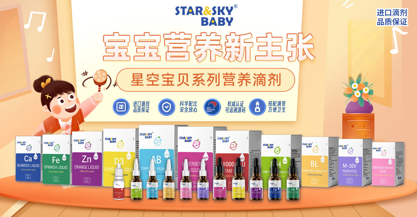 STAR&SKY BABY(星空寶貝)專為寶寶研發(fā),營養(yǎng)守護(hù)、成長不講究。擁有新西蘭、美國技術(shù)領(lǐng)先的保健品及營養(yǎng)食品生產(chǎn)企業(yè)供應(yīng)鏈。其中新西蘭生產(chǎn)企業(yè)是首批在華注冊(cè)編號(hào)的境外企業(yè)。工廠位于新西蘭最大的城市奧克蘭,擁有數(shù)字化綜合性大型工廠和獨(dú)立的科研團(tuán)隊(duì),擁有營養(yǎng)保健品、配方乳粉兩大廠區(qū),共約3.6萬平方米。工廠目前已通過PMP、HACCP、NZDMADE、NFS、ISO2000等認(rèn)證。液體鈣、鐵、鋅、D3、鈣鎂鋅、接骨木莓、戊糖片球菌、羅伊氏乳桿菌、鼠李糖乳桿菌(HN001)、乳糖酶、M-16v益生菌、BL復(fù)合益生菌、復(fù)配酶制劑(消化酶)等滴劑一經(jīng)推出,即滴即食、不卡喉,食用方便。專注寶寶健康成長,深受寶媽和寶寶的喜愛。