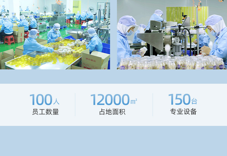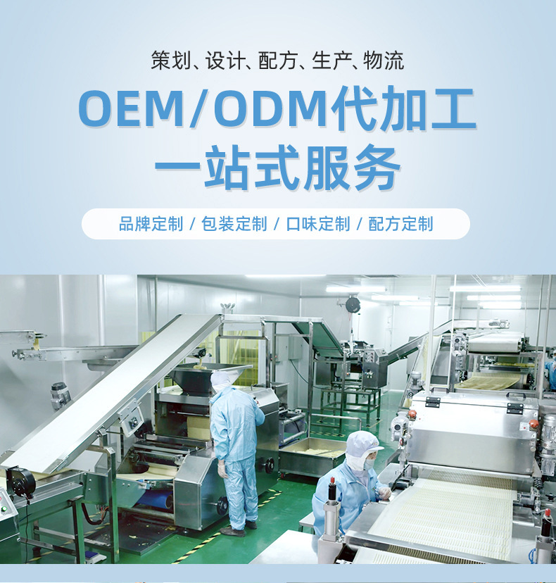 漳州童世界食品有限公司主營一站式代加工OEM業(yè)務(wù),致力于健康兒童食品、功能性代餐食品、凍干燕窩的研發(fā)與生產(chǎn),公司占地面積12000平方米,始終秉承已科技為先導(dǎo)、以先進(jìn)的現(xiàn)代化管理依托、已“顧客滿意第一”為宗旨的經(jīng)營方針、致力發(fā)展成為一家研發(fā)和制造健康、美味、營養(yǎng)的食品企業(yè)。 公司的誠信、實(shí)力和產(chǎn)品質(zhì)量獲得業(yè)界的認(rèn)可。歡迎各界朋友蒞臨參觀、指導(dǎo)和業(yè)務(wù)洽談。
