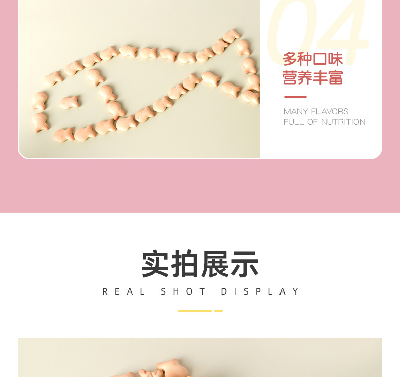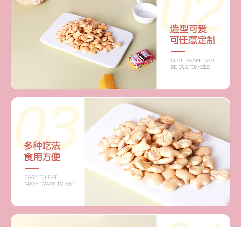 貼牌定制小魚造型餅干500g兒童食品廠家批發(fā)OEM牛奶味韌性餅干產品展示