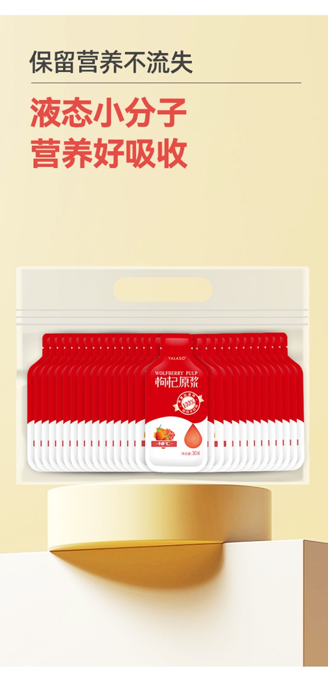 呀啦嗦枸杞原漿30袋 透明袋裝產品展示