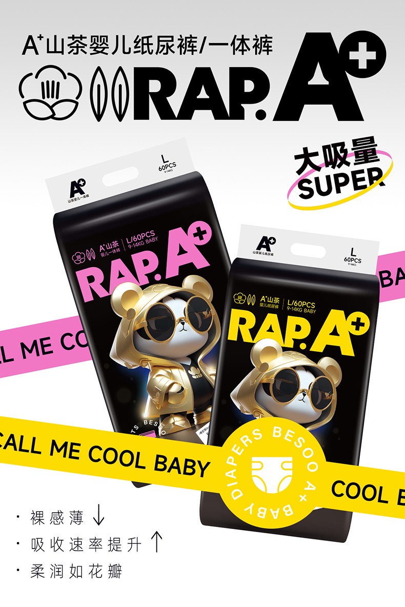 A+山茶紙尿褲/拉拉褲,復(fù)方山茶花配方,萃取天然山茶精華,貼心呵護(hù)寶寶嬌嫩肌膚;柔軟細(xì)膩,高彈力,不勒肚,給寶寶花朵包裹般的舒適感;凹凸透氣表層,透氣性能大大提升,更快釋放濕氣與熱氣;5000萬呼吸微孔,循環(huán)排濕散熱,不悶小PP;4cm加高護(hù)圍,雙側(cè)立體隔邊,避免尿液側(cè)漏。
