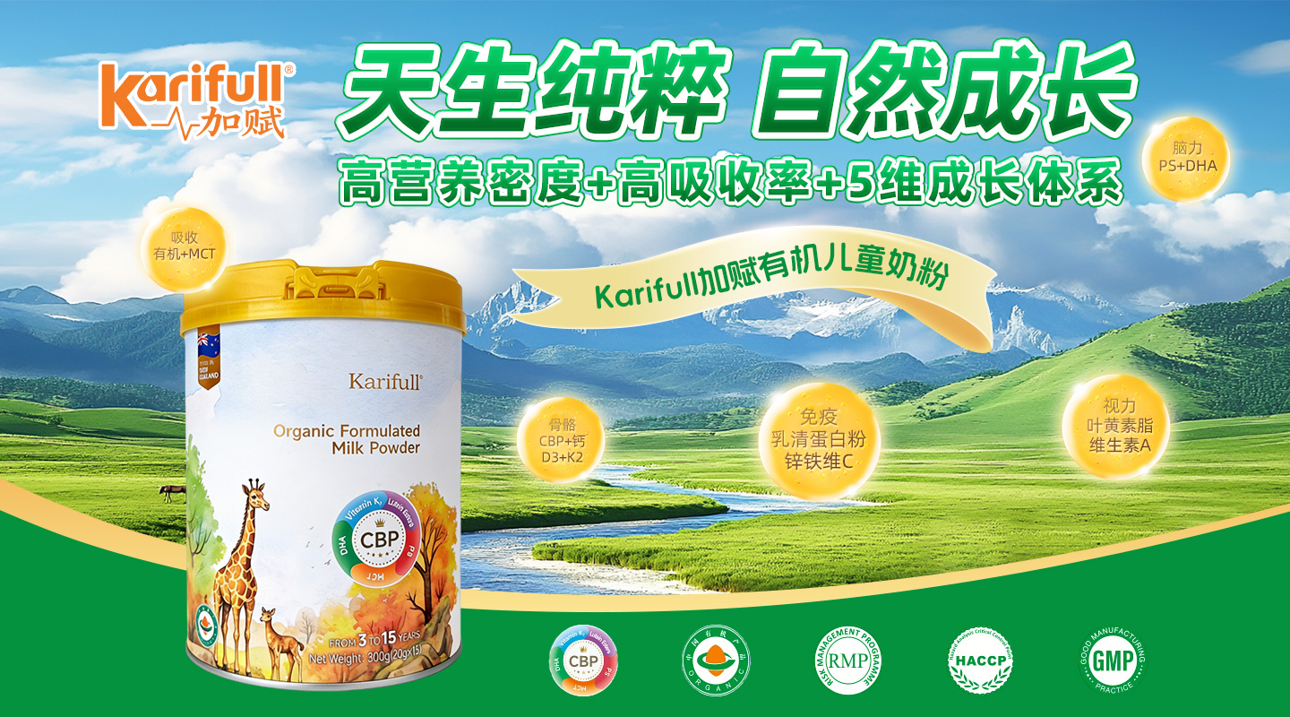 加賦有機(jī)兒童奶粉獲得中國(guó)與新西蘭雙重有機(jī)認(rèn)證,配方溫和無(wú)刺激,適合家庭日常長(zhǎng)期使用。其高營(yíng)養(yǎng)密度與MCT+益生元組合,助力3-15歲兒童吸收關(guān)鍵營(yíng)養(yǎng),守護(hù)骨骼、腦力與免疫力。