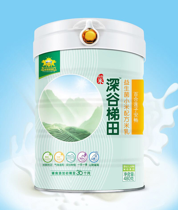 1.金盾愛嬰深谷梯田益生菌小米配方米乳,具有百合蓮子、果蔬繽紛、核桃紅棗、淮山薏米四個配方,分為罐裝和盒裝兩種,口味齊全,營養(yǎng)豐富,