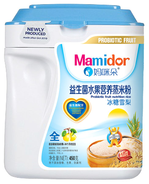 媽咪朵益生菌水果營(yíng)養(yǎng)蒸米粉加入益生菌配方,同時(shí)添加多種水果、蔬菜、谷物等食材、益生菌有助于腸道消化,維護(hù)健康的腸道環(huán)境,促進(jìn)營(yíng)養(yǎng)吸收