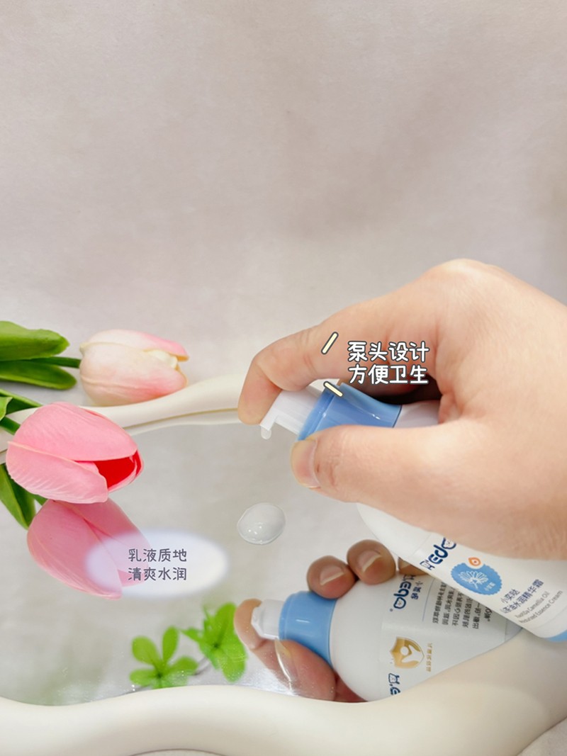 小奕噠山茶油水潤精華霜,為嬌嫩肌膚設(shè)計(jì),富含天然山茶油精華成分,一抹化水,快速吸收。深入滋養(yǎng)皮膚,給肌膚提供養(yǎng)分,長效保濕呵護(hù),令寶寶肌膚水水嫩嫩。兒童化妝品標(biāo)志“小金盾”,嬰幼適用,植物配方,保濕滋養(yǎng),溫和呵護(hù),選擇更放心!乳液質(zhì)地,清爽水潤,泵頭設(shè)計(jì),方便衛(wèi)生。