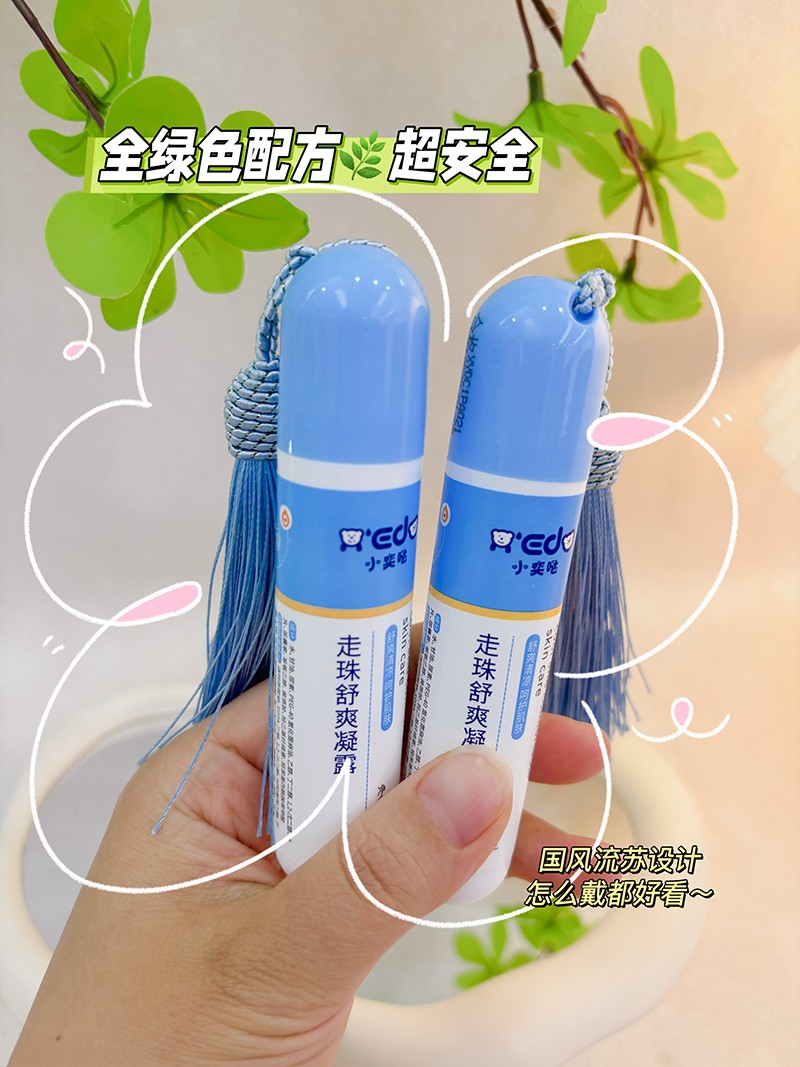 小奕噠走珠舒爽凝露,蘊(yùn)含多種草本提取物,產(chǎn)品性質(zhì)溫和,其散發(fā)的獨(dú)特植物芳香可形成一種保護(hù)屏障。在野外,室內(nèi)都能有效呵護(hù)寶寶肌膚。全綠配方,溫和安全,產(chǎn)品能緩解外界環(huán)境因素對(duì)皮膚造成的不適,清涼舒爽,適合夏季全家使用。國(guó)風(fēng)流蘇設(shè)計(jì),小小一支,攜帶方便,隨時(shí)隨地呵護(hù)肌膚。