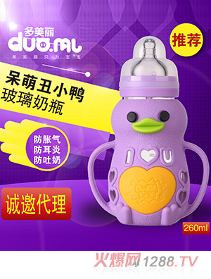 多美麗是卡通奶瓶界的典范,它所研發(fā)和生產(chǎn)的搗蛋豬、大嘴猴、小鱷魚、貓頭鷹等充滿童趣的卡通奶瓶在市場(chǎng)上極為暢銷,消費(fèi)者對(duì)它的喜愛既源自于可愛萌動(dòng)的造型,又來自對(duì)產(chǎn)品安全性和使用舒適性的信賴。多美麗卡通奶瓶的瓶身一般采用高硼硅晶鉆玻璃制成,瓶身包裹一層卡通形象設(shè)計(jì)的硅膠“外套”,使奶瓶不僅安全可靠,而且防摔防爆,真正的集實(shí)用性與美觀性于一身。