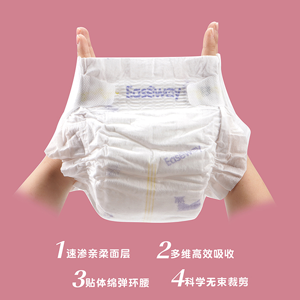 宜氏紙尿褲,進(jìn)口高分子薄型吸液芯體,獨(dú)特凹槽設(shè)計(jì),立體多維吸收,倍量瞬吸,干爽舒適,大吸量,整夜無(wú)憂(yōu)。速滲親柔面層,多維高效吸收,貼體綿彈環(huán)腰,科學(xué)無(wú)束裁剪,雙層拒水防漏,全方位透氣設(shè)計(jì),110mm加寬芯體,雙倍瞬吸,不斷層,不起坨。3D打孔親膚層,打孔表層在皮膚和尿褲之間形成空氣通道,當(dāng)尿液接觸的時(shí)候,首先流入打孔通道中快速吸收,使皮膚接觸面始終保持干爽。