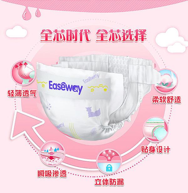宜氏紙尿褲,采用3D打孔親膚層,打孔表層在皮膚和尿褲之間形成空氣通道,當(dāng)尿液接觸的時候,首先流入打孔通道中快速吸收,使皮膚接觸面始終保持干爽。使用輕巧透氣的新研發(fā)芯體,保證嬰兒屁股舒適干爽,讓寶寶的肌膚時刻保持充分呼吸。宜氏紙尿褲專為長時間使用而設(shè)計(jì),保證嬰兒屁股舒適干爽,不會因長期使用而造成斷裂,夜間長效干爽。