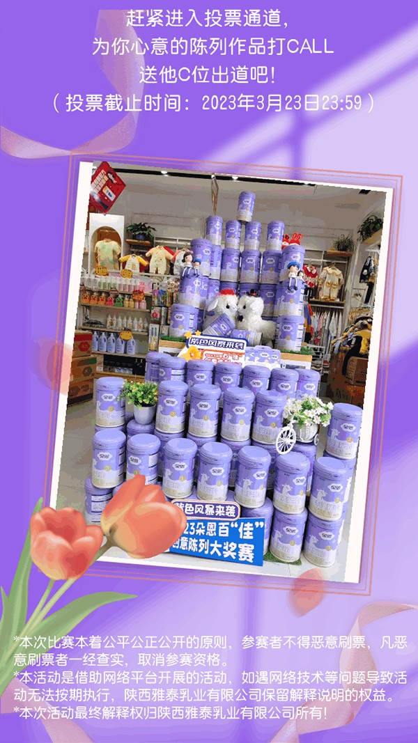 當(dāng)前位置:首頁(yè) > 孕嬰童新聞中心 > 企業(yè)報(bào)道 > 朵恩百佳創(chuàng)意陳列大獎(jiǎng)賽開始投票啦!參與投票贏最高188元現(xiàn)金紅包!