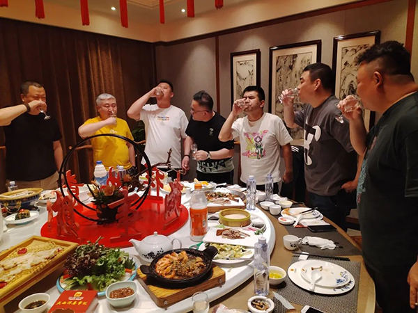 菲瑞營(yíng)銷(xiāo)中心總經(jīng)理及銷(xiāo)售總監(jiān)陪同貴客,在當(dāng)天的“歡迎晚宴”和遠(yuǎn)道而來(lái)的“家人們”一起談未來(lái)、講生活,大家如親人般相談甚歡。