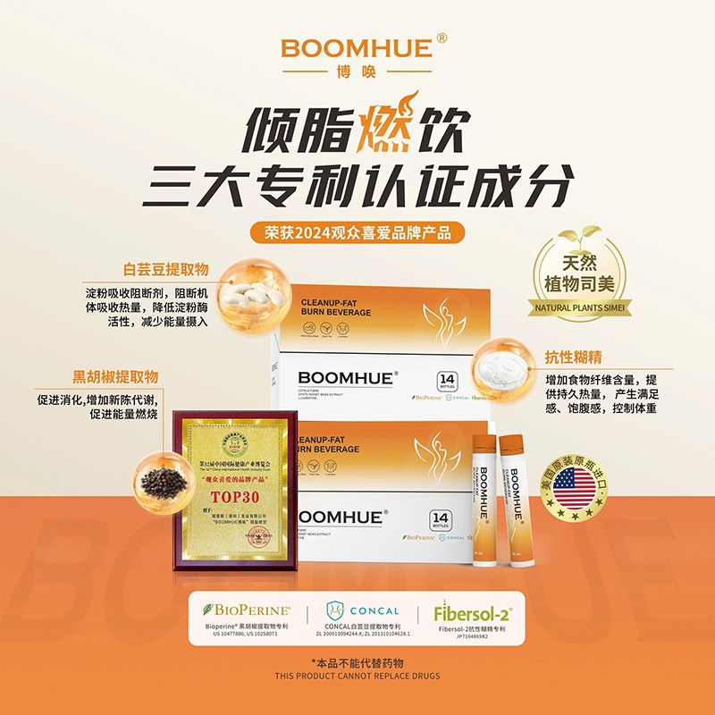 在追求健康與美麗的道路上,瑞普斯同樣不遺余力。BOOMHUE博喚傾脂燃飲,憑借卓越的復(fù)合配方與創(chuàng)新營養(yǎng)補(bǔ)給方式,榮獲“最受觀眾喜愛品牌產(chǎn)品獎(jiǎng)”。傾脂燃飲甄選15種優(yōu)質(zhì)原料成分,堪稱“天然植物司美”,其中白蕓豆提取物、黑胡椒提取物、抗性糊精三大成分擁有國內(nèi)外專利認(rèn)證。通過阻、抑、燃、消、排5重管控,助力理想身材管理。